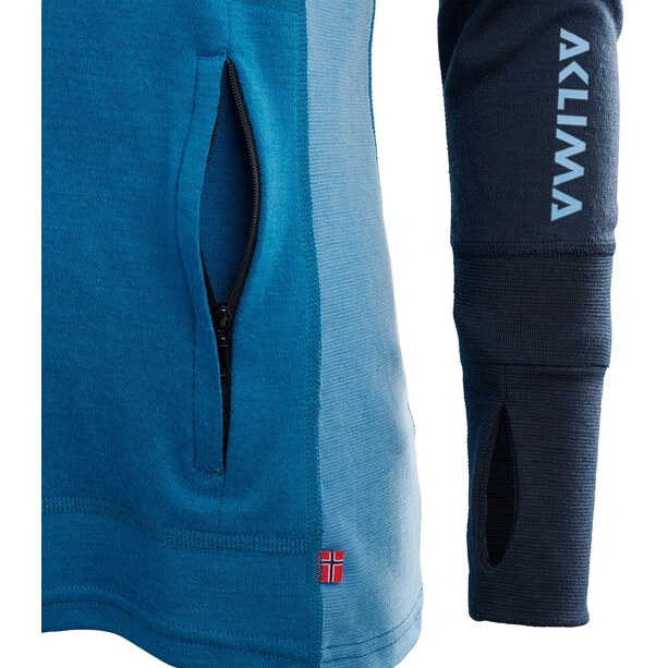 Aclima WarmWool Hood Sweater with Zip Women navy blazer/blue sapphire/azure blue(navy blazer/blue sapphire/azure blue)